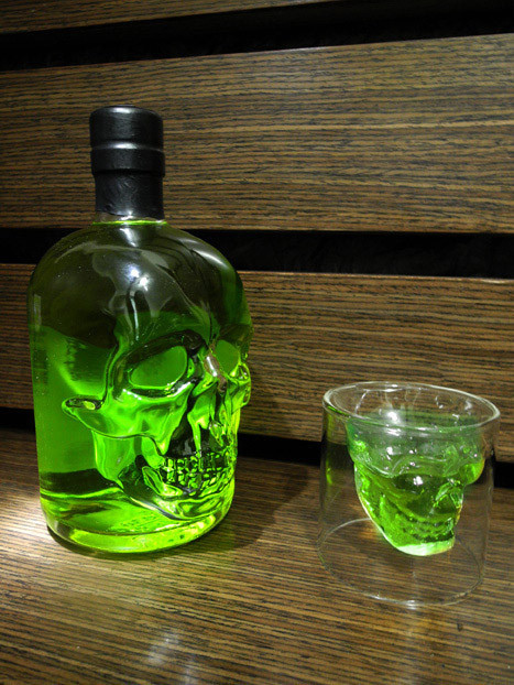 . 這禮拜,咱又入手了支產自德國的《骷髏艾碧斯》(就上面照片那支),搭配著雙層懸浮的骷髏杯雖然%數一樣是70(也不要再高了啦,我其實還想繼續活幾年),但更是加倍應和妖異魔幻的氛圍(我的天啊視覺效果還真不錯);目前還沒開瓶,改天再繼續補完心得、比較啊。